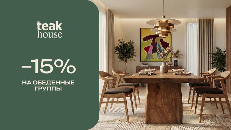 -15% на обеденные группы из массива дерева в Teak house